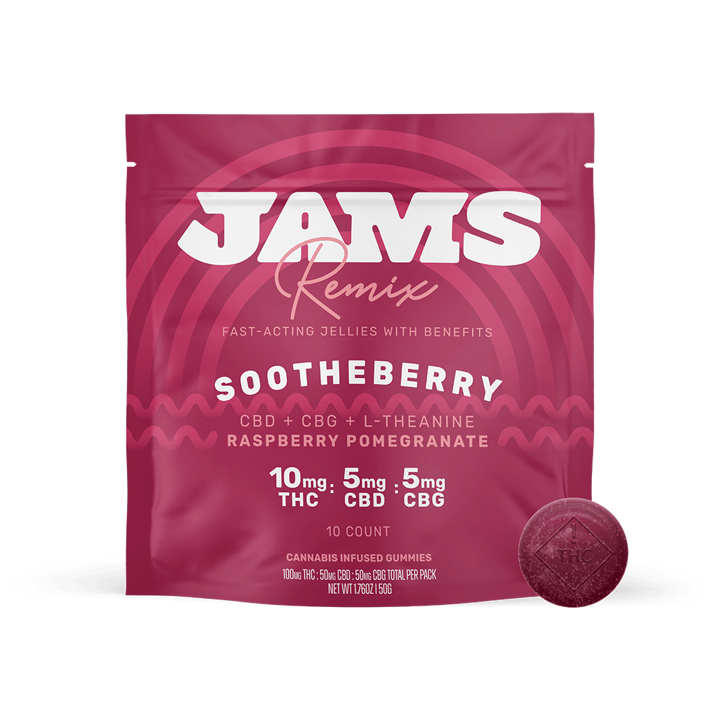 Jams | Remix | Sootheberry | Hybrid | Edibles | THC | CBD | CBG | L-Theanine | 100:50:50mg