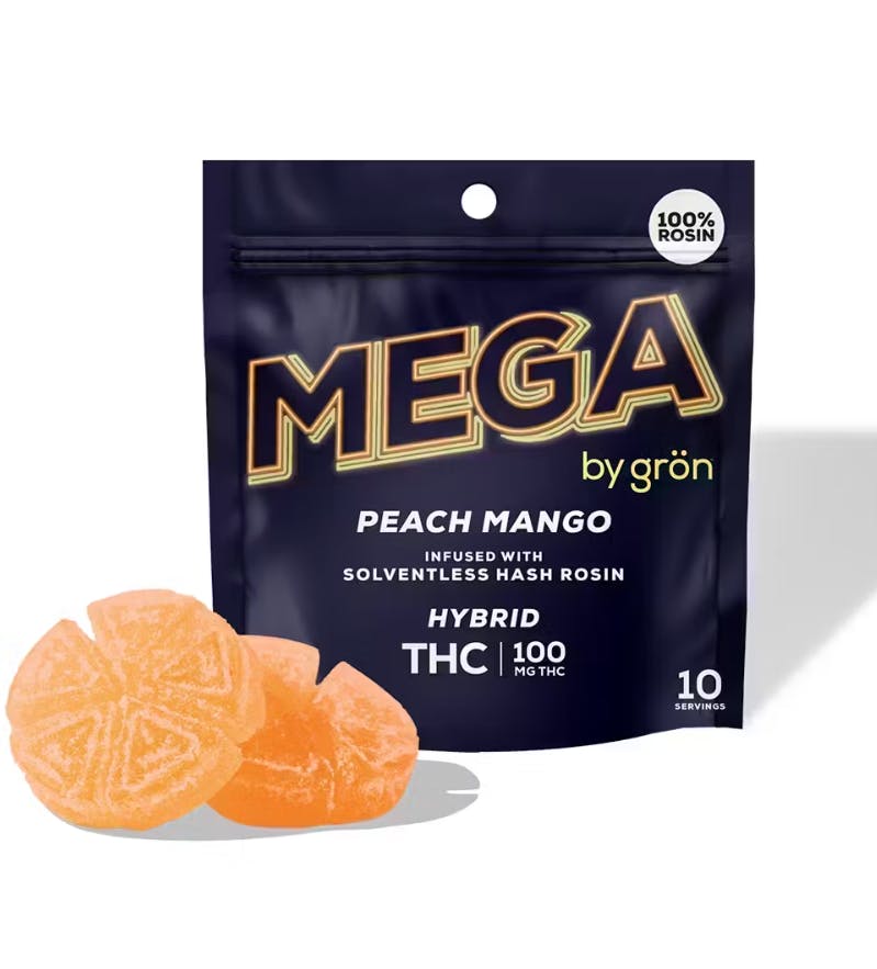 Gron | Mega | Peach Mango | Hybrid | Solventless Hash Rosin | Edibles | 100mg